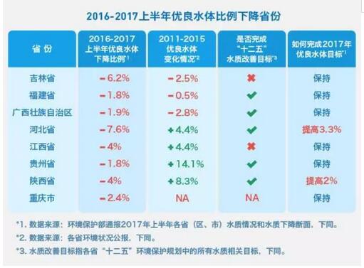 4.2017上半年出現(xiàn)下降的省份中,吉林、江西沒有完成“十二五”水質(zhì)改善目標(biāo),重慶“十二五”水質(zhì)信息公開不完整。